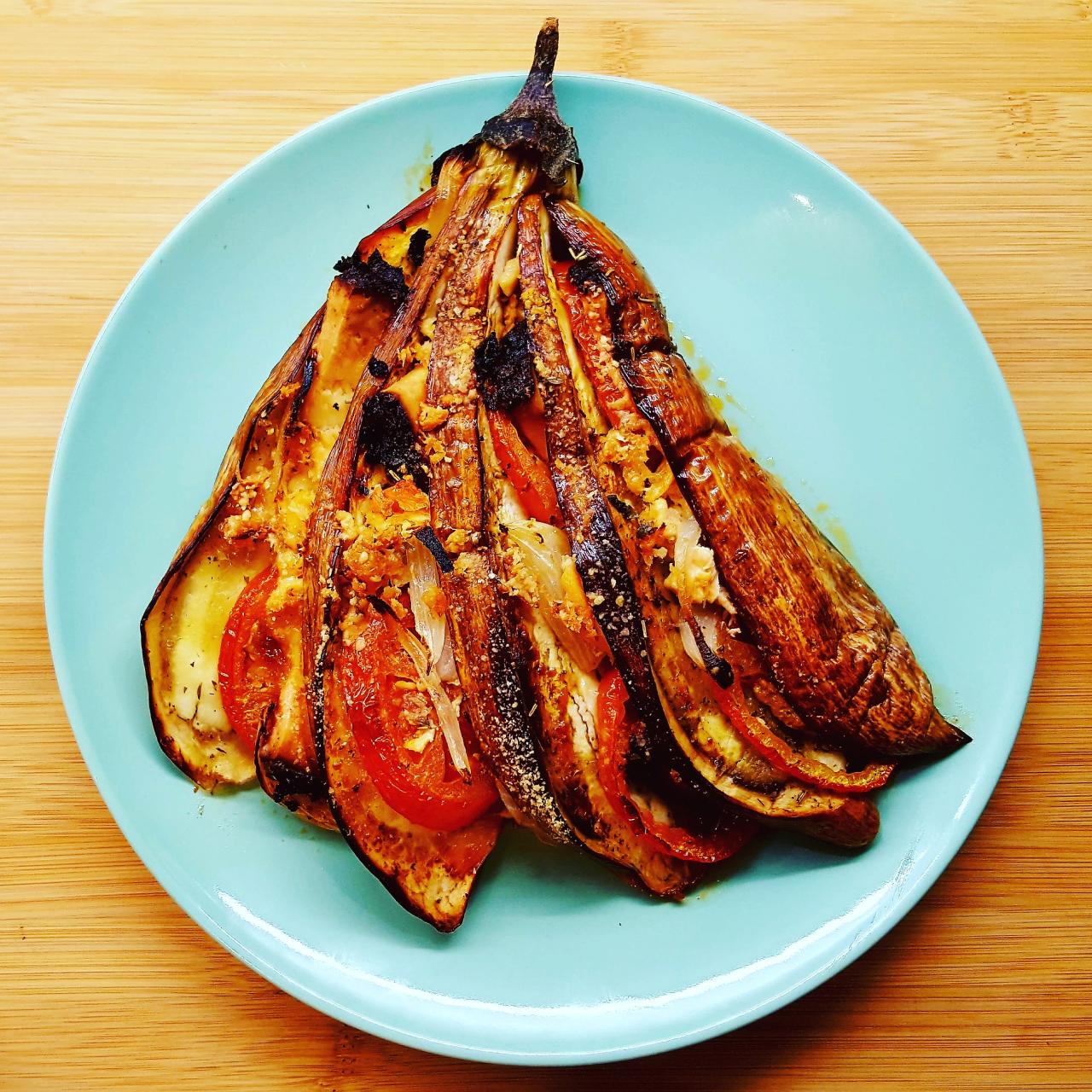 Este abanico de berenjena asada es un platazo de verduras delicioso